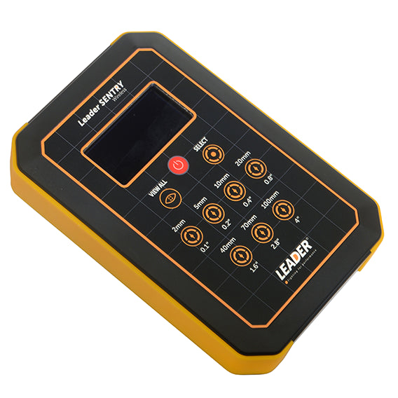 SENTRY projects a Class II laser up to 165 feet (50 meters)onto a target surface; any deflection ≥ 1.6 mm (1/16 in) triggers a 105 dB siren and visual alert. Two units can be linked wirelessly for simultaneous, bidirectional monitoring or remote evacuation signaling.