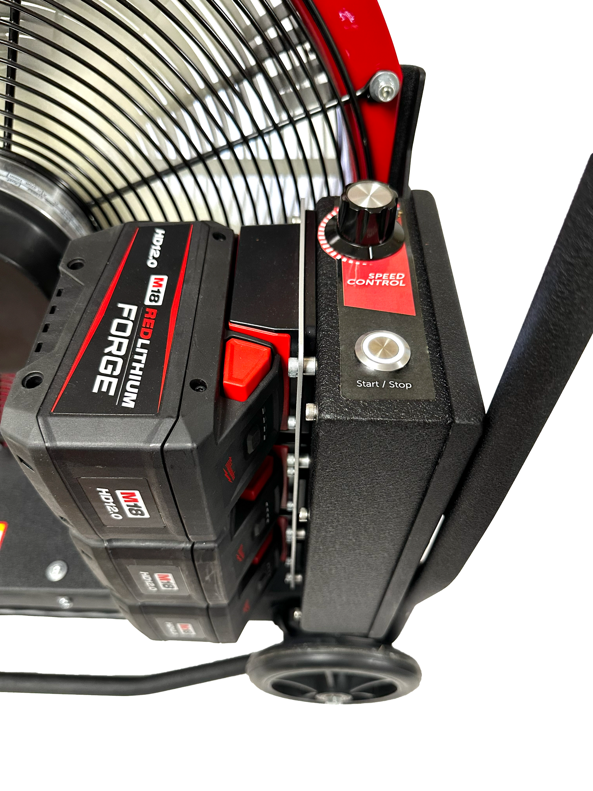 With 1 and up to 3 removable MILWAUKEE® M18™ REDLITHIUM™ HIGH OUTPUT™ HD12.0, this fan will run for an average of 65-minutes at full speed.